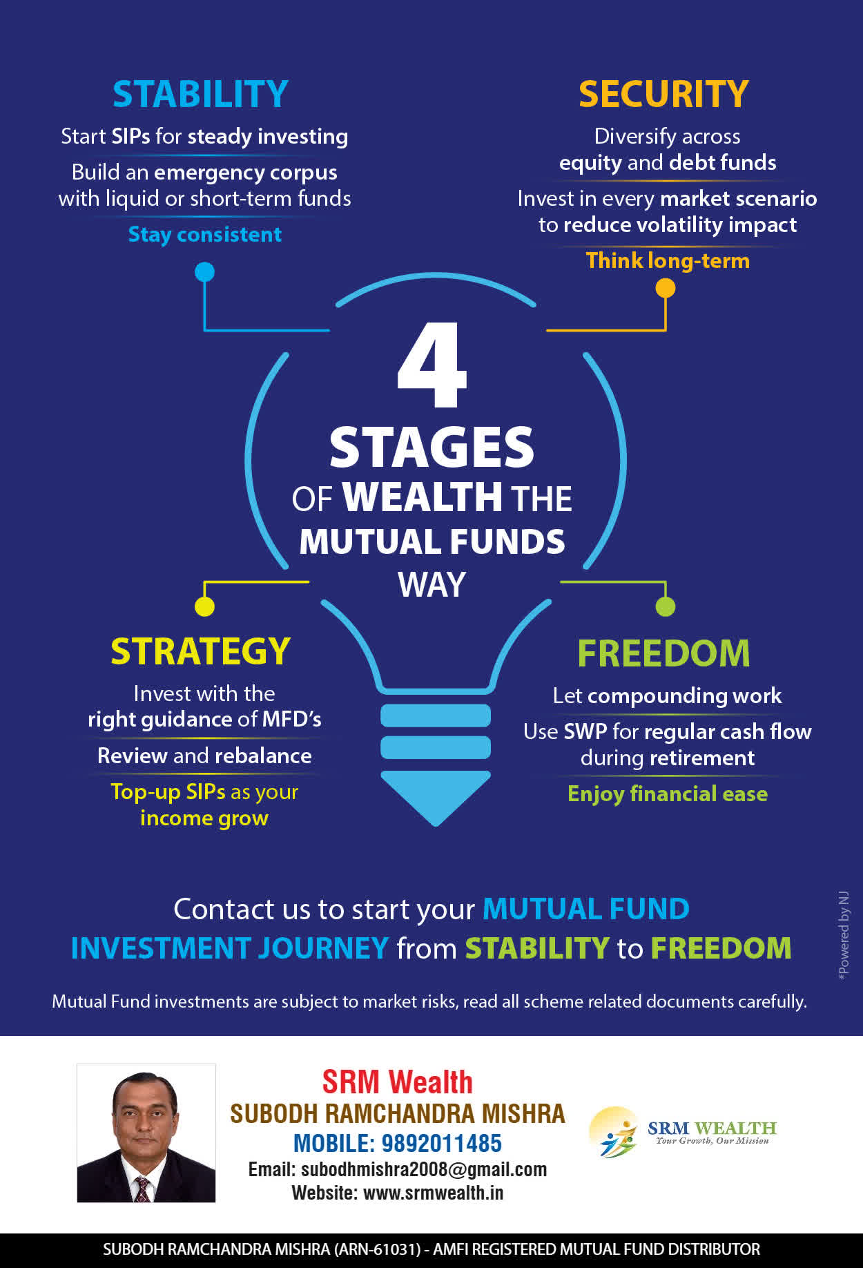 At SRM Wealth, our mission is to provide our clients with thoughtful financial assessment and effective wealth building options. We are committed to offering clear, unbiased and uncluttered guidance that enhances our client’s financial well-being and translates into practical actionable strategies.